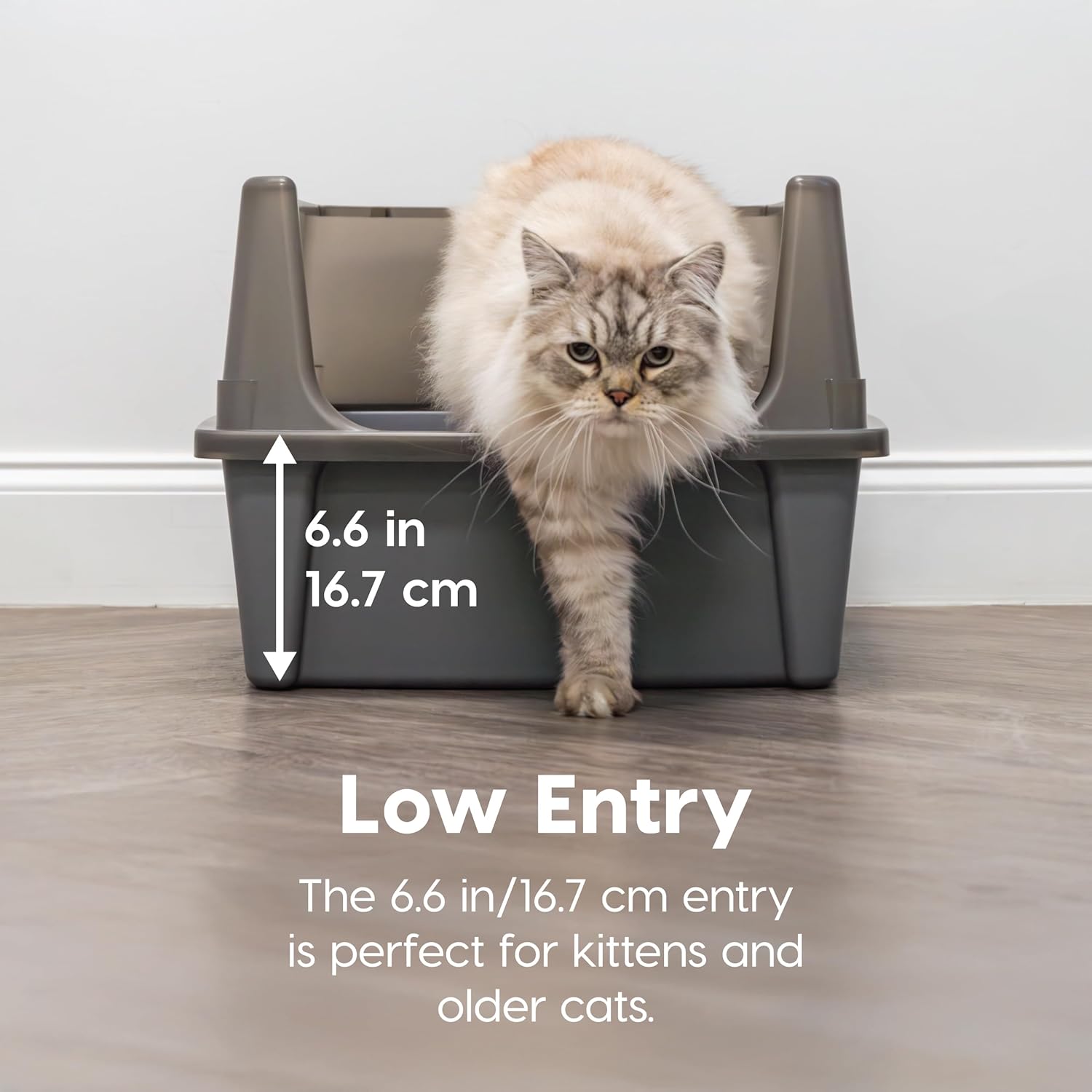 - OPEN TOP: The open-top design encourages airflow and makes it easy to monitor your cat’s litter habits. It’s ideal for cats who dislike covered boxes and lets you know exactly when it’s time to scoop, helping maintain a fresher, cleaner space.
