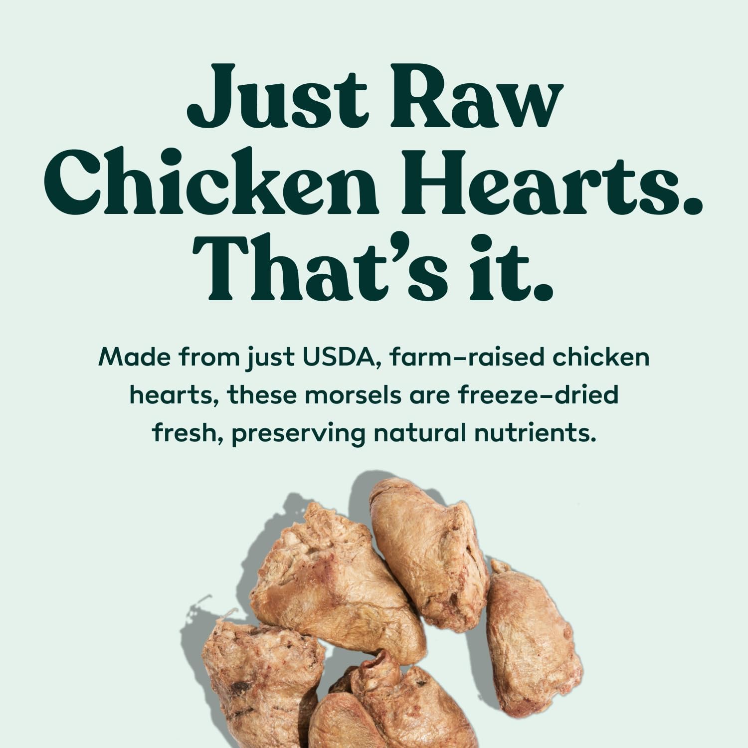 - SINGLE INGREDIENT DOG TREATS: Healthy dog treats made from humanely sourced, farm-raised, USDA-rated chicken hearts – that’s it! Our freeze dried chicken hearts are nutrient-rich to help dogs satisfy their instinctual meat cravings in a healthy way.