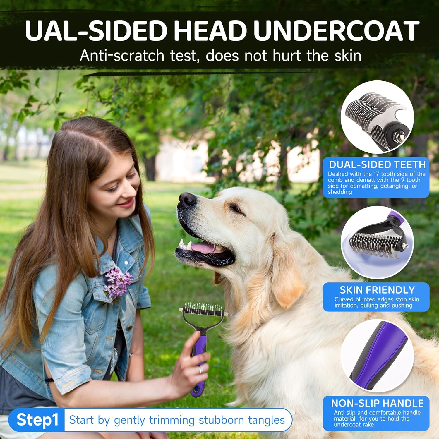 - Undercoat Rake for Thick Coats: The undercoat rake tackles mats and tangles, reducing shedding by up to 95%. Its smooth, rounded blades ensure gentle grooming, leaving your pet’s coat smooth and manageable.
