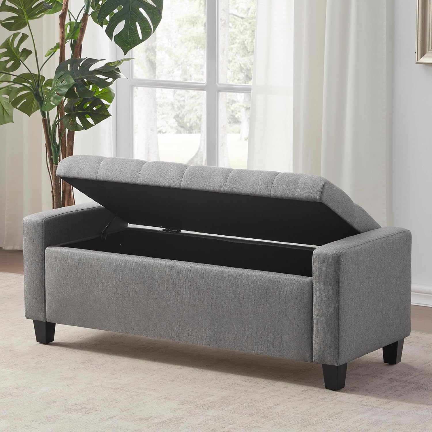 Ottoman with Storage, 48.8" Fabric Storage Ottoman Bench with Hinge, Bedroom Bench, Upholstered Benches with Seating for Living Room, Entryway (Grey)