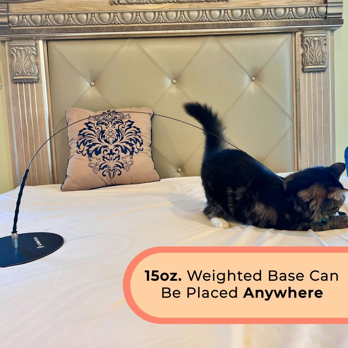 - DURABLE & ADAPTABLE: The interactive bird cat toy includes 2 highly flexible rods, a strong suction cup that can be attached horizontally or vertically to any smooth, clean surface, and a heavy-duty weighted base for carpets & furniture. The best part is that it requires no interaction from you, and your cat can play whenever they want.