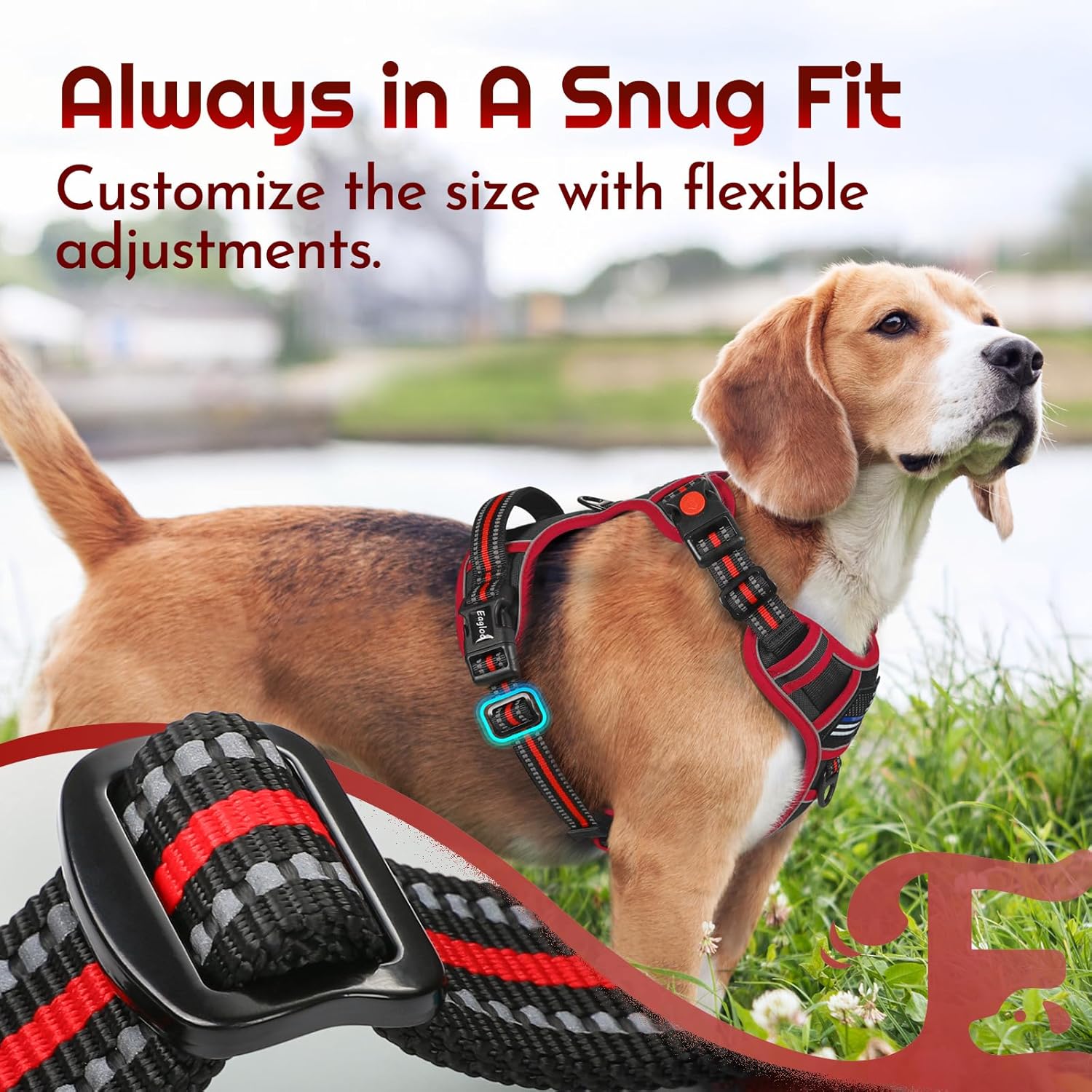 Eagloo Dog Harness Medium Sized, Easy Wearing with 3 Buckles, Adjustable No Pull Pet Harness with 2 Rings for Walking, No Chock Reflective Soft Padded Vest with Control Handle, Black & Red, M