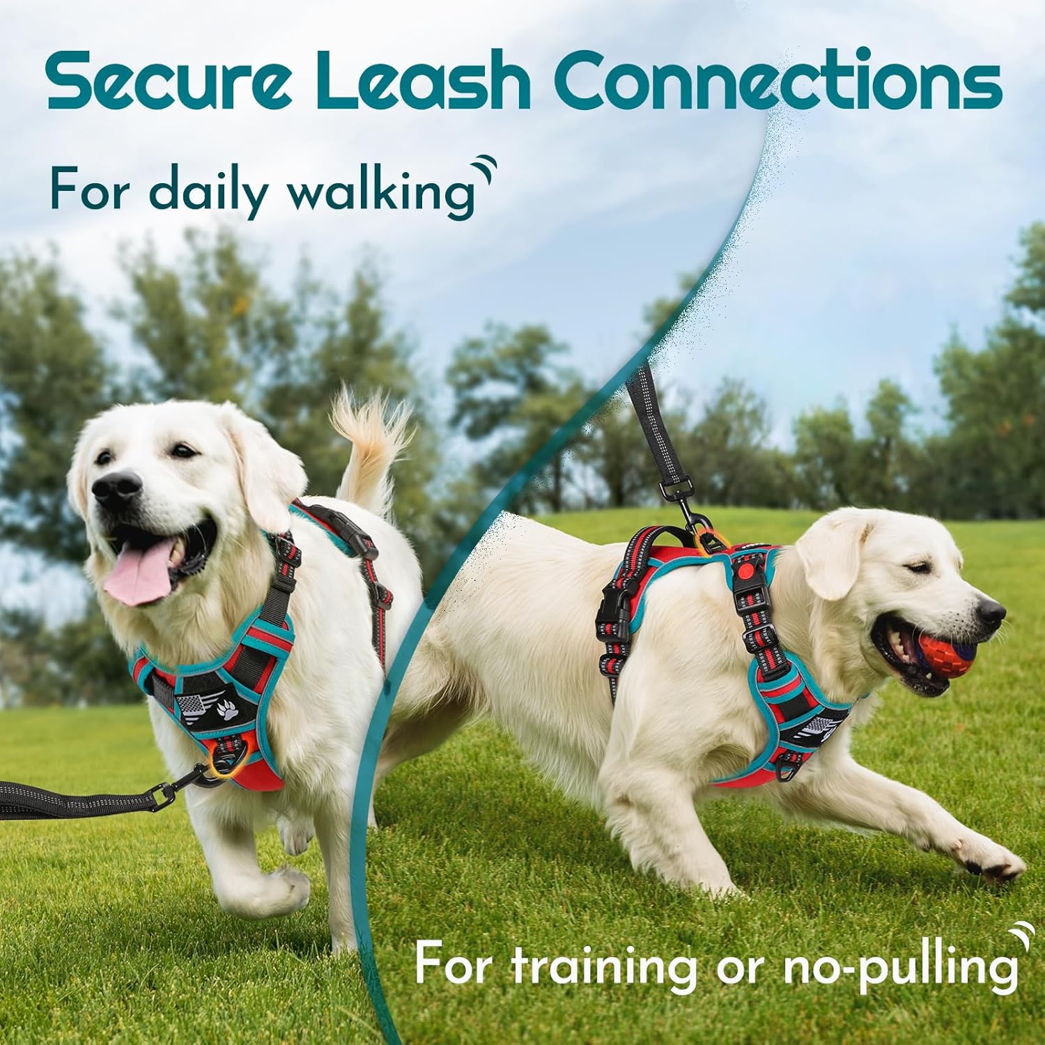 Eagloo Dog Harness Small Sized, Easy Wearing with 3 Buckles, Adjustable No Pull Pet Harness with 2 Rings for Walking, No Chock Reflective Soft Padded Vest with Control Handle, Red & Teal, S
