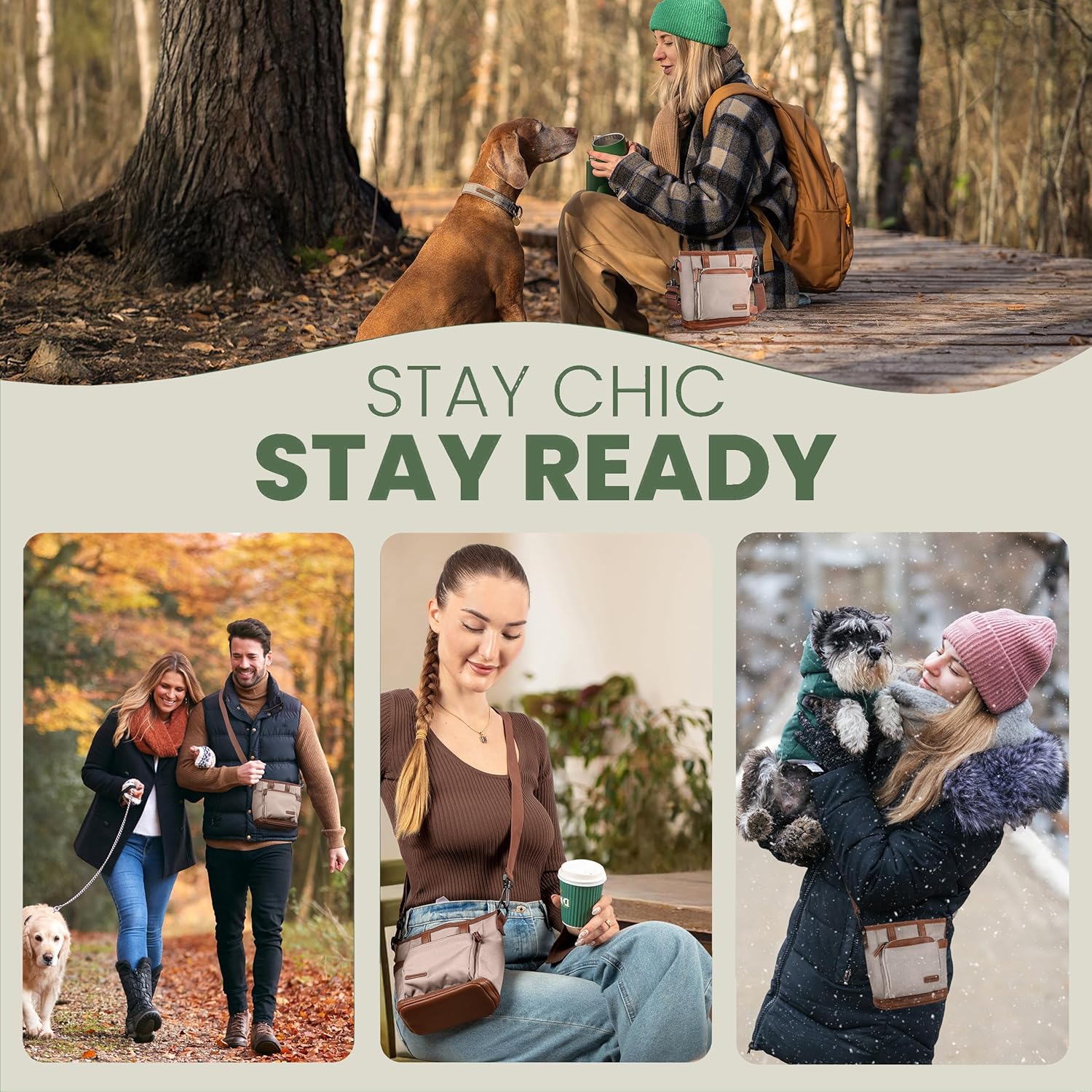 - 【ALL-IN-ONE STORAGE】 - With ample space and an expandable pocket, this dog walking bag holds treats, training tools, and poop bag rolls, easily holding your phone, keys, wallet, tennis ball, and documents, making it a great companion for long walks or outdoor adventures.