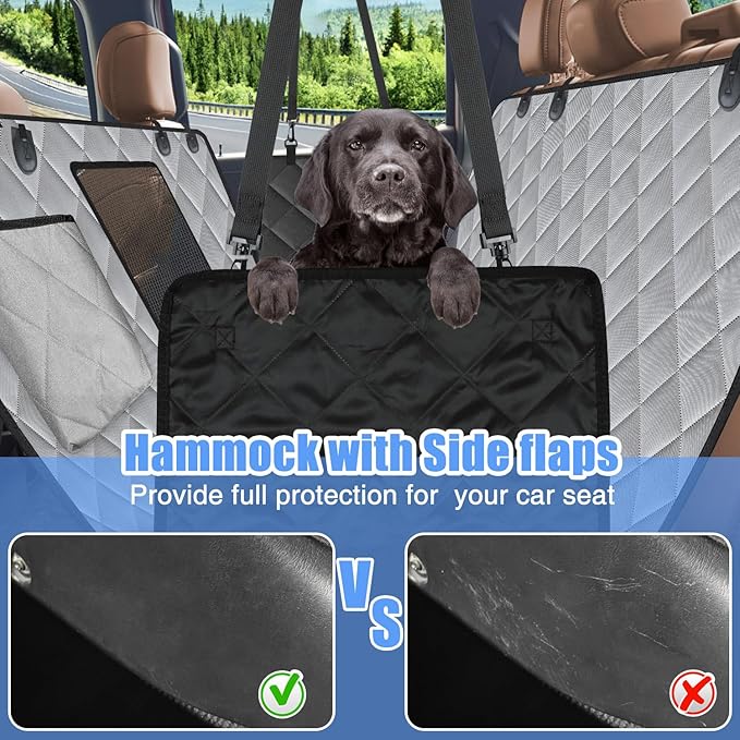 Kytely Dog Car Seat Cover XL, Heavy Duty Dog Seat Cover for Back Seat, 100% Waterproof Nonslip Hammock for Car with Side Flap, Scratch Proof Pet Back Seat Covers