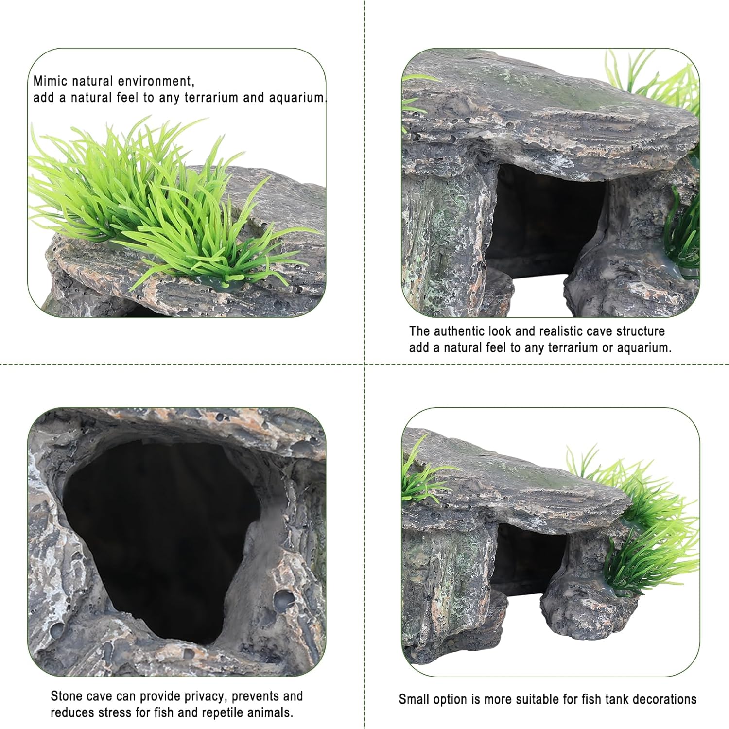 - SUIT FOR FISH TANK DECORATIONS AND REPTILE HIDE: Designed aquatic turtle basking platform and terrestrial environments, perfect for gecko tank accessories and fish tank decor offer versatility. Ideal for axolotl tank accessories, fish tank accessories, tortoise habitat accessories, ensuring a complete and natural environment for your pets, like axolotl, shrimp, fish, bearded dragon, gecoks, ect.
