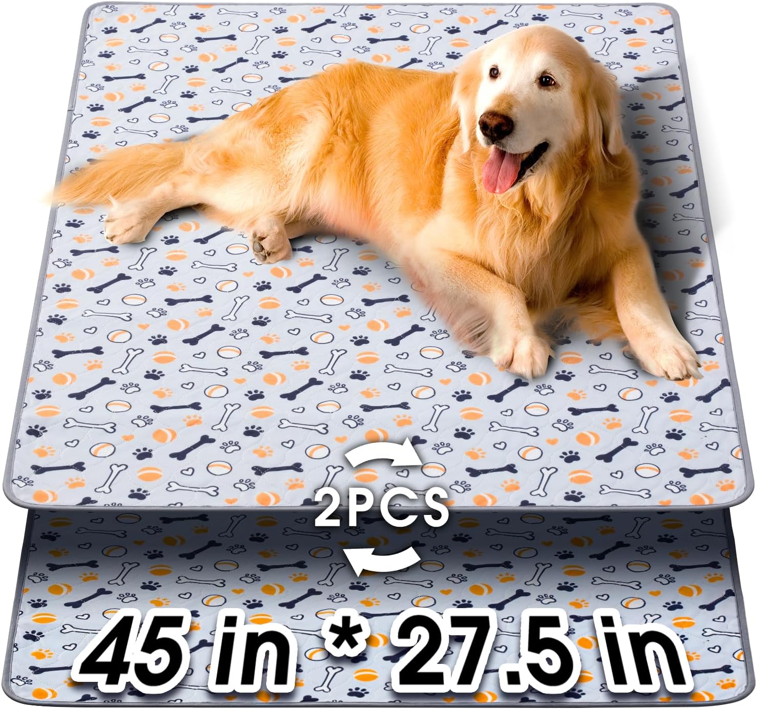 Hompet Washable Pee Pads for Dogs, 45"x27.5", 2-Pack Thick Heavy Absorbency Reusable Pee Pads Prevent Leakage Non-Slip, Pet Training Pads for Puppy Playpen, Crate, Potty, Floor, Bed, Sofa