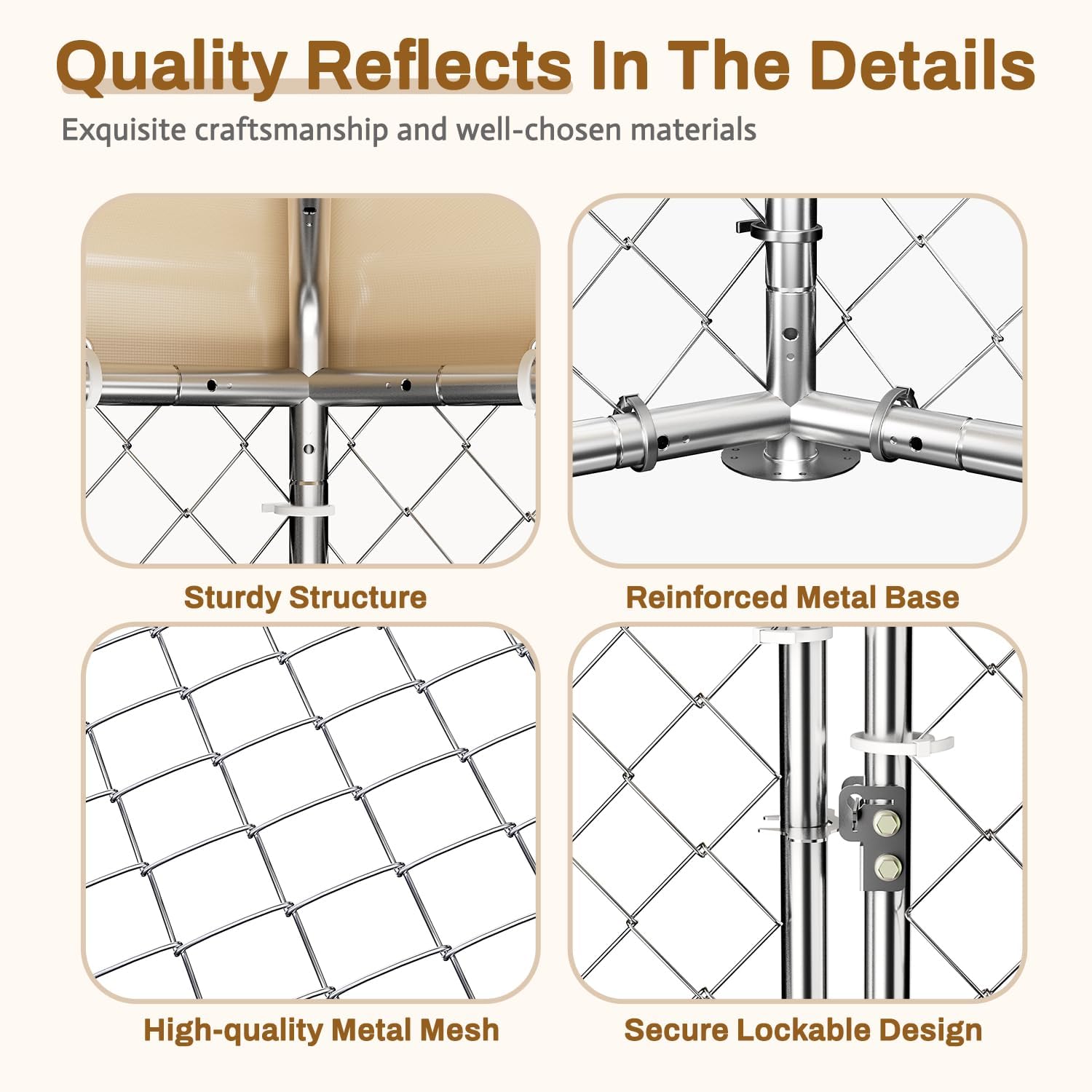 - More Space:The new and upgraded outdoor dog kennel has a lot of space(9.84'x9.84'x6.56').Can accommodate many large dogs at the same time.You don't have to worry about running out of space anymore
