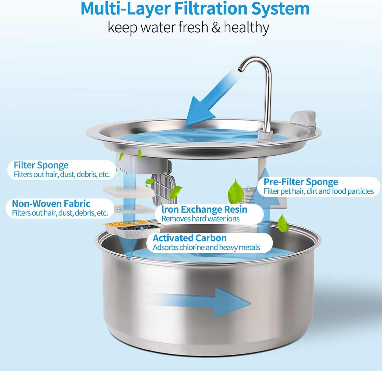 - Regularly clean and replace filter:Regularly replace clean filters based on the number of your pets and your pet's drinking frequency.It is recommended to replace the filter every 2-3 weeks.