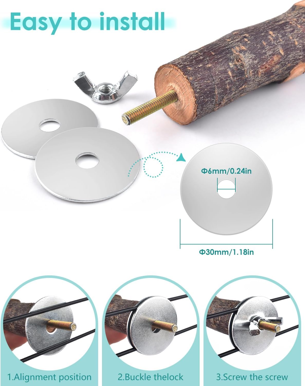 - Perfect Design: Each perch platform for parrots is equipped with a metal wing nut and built-in bolts, enabling it to be firmly attached either inside or outside the cage without the requirement of additional installation equipment. This provides the parrots with extra living and landing space, creating a natural habitat