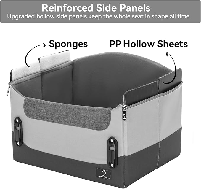 A4Pet Dog Car Seats for Small Dogs, Booster Car Seat with Patent Buckles & Clip-On Safety Leash, Pet Seat for Puppy Small Dogs Cats Under 25 Lbs, Grey