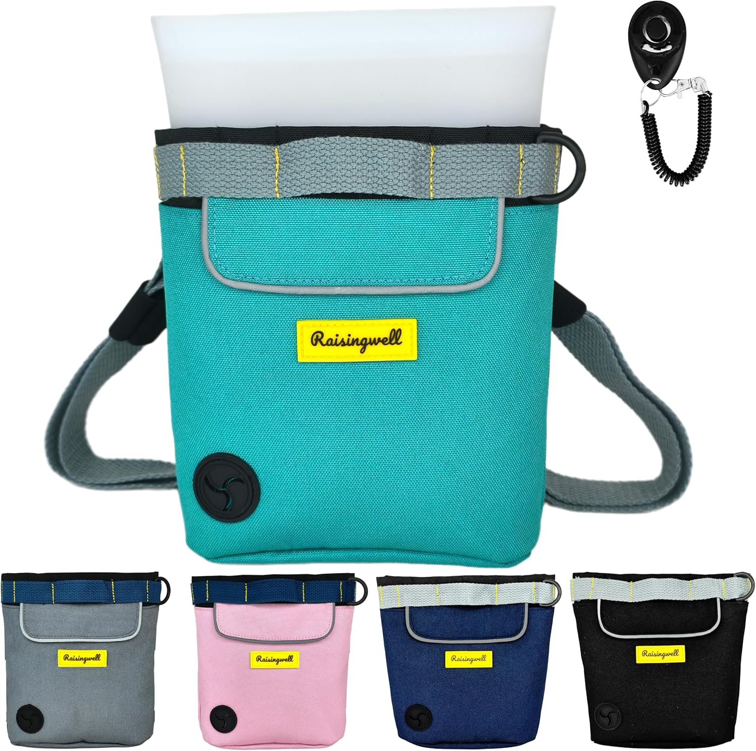 - 5.Durable Tech Material: Raisingwell's dog treat training pouch is made from durable, washable, and non-toxic fabric. Notably, its waterproof lining solves the problem of difficult-to-clean interiors of training bags, making it a great choice for your dog treat bag or dog treat fanny pack.