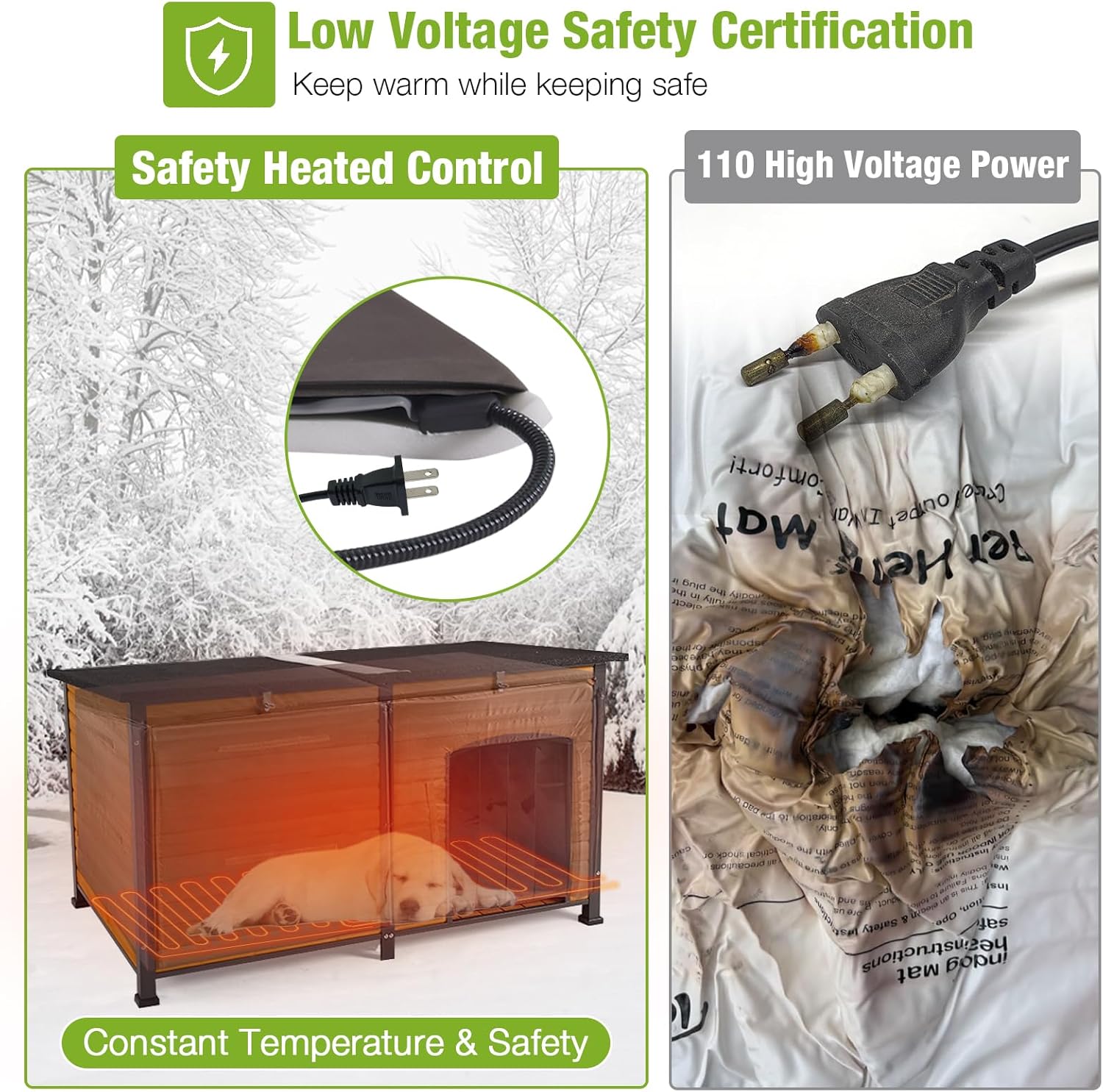 - Safe Heating System: UL-tested 12V heating pad with adjustable temperature (89-116°F), time settings (2, 4, 6 hours),preventing overheating or chilling, ensures consistent warmth. 6.5 ft chew-resistant cord adds an extra layer of safety