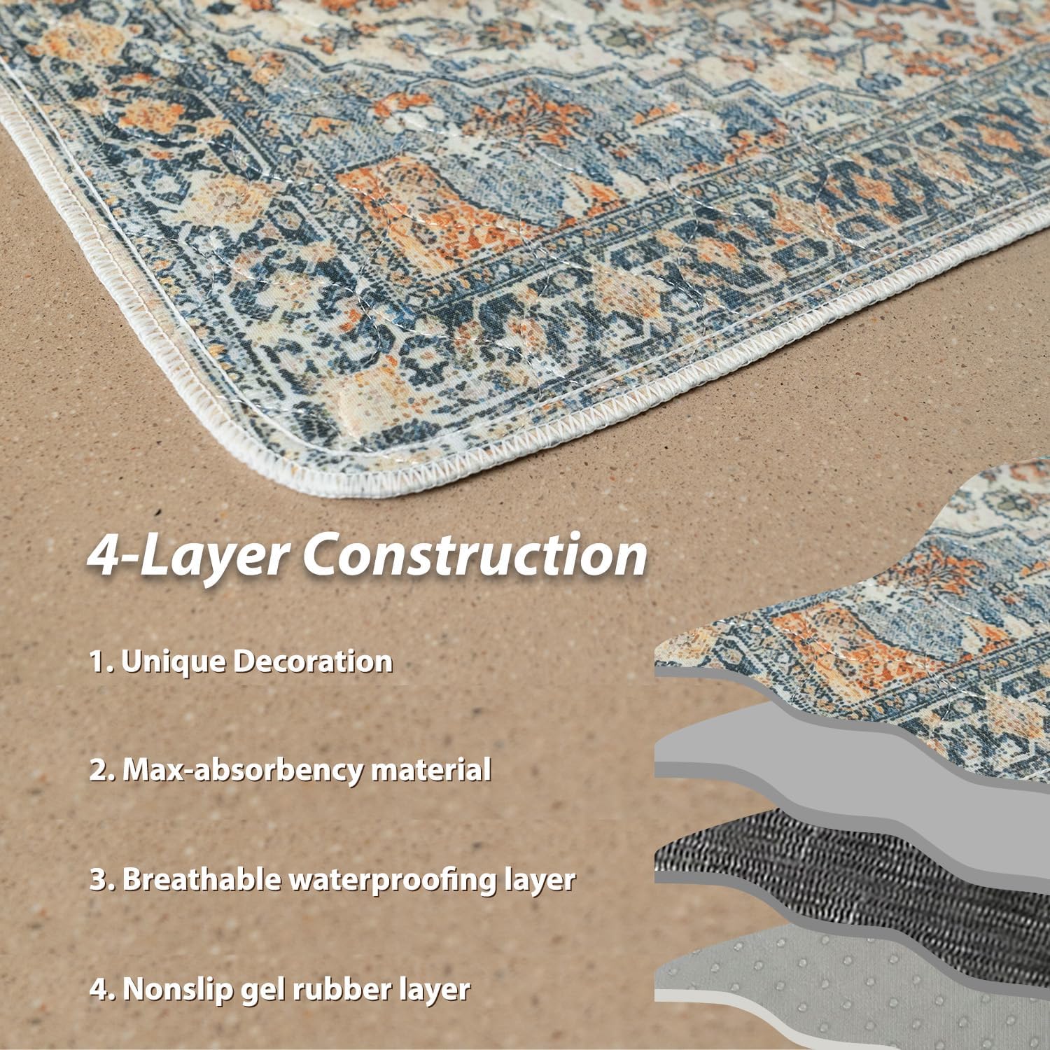 nunubaby Washable Pee Pads for Dogs, Stylish, Non-Slip and Leak-Proof Pee Pads. Reusable Potty Pads for Dogs for Crates and Floors.(Beige/Multi, 36" x72" )