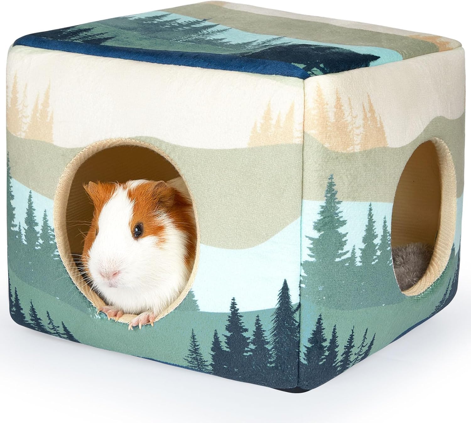 Bienbee Guinea Pig Hideout, Washable Guinea Pigs House Cozy Guinea Pigs Bed for Small Pet Bunny/Rabbit/Hamster/Chinchilla Guinea Pig Accessories Forest Landscape