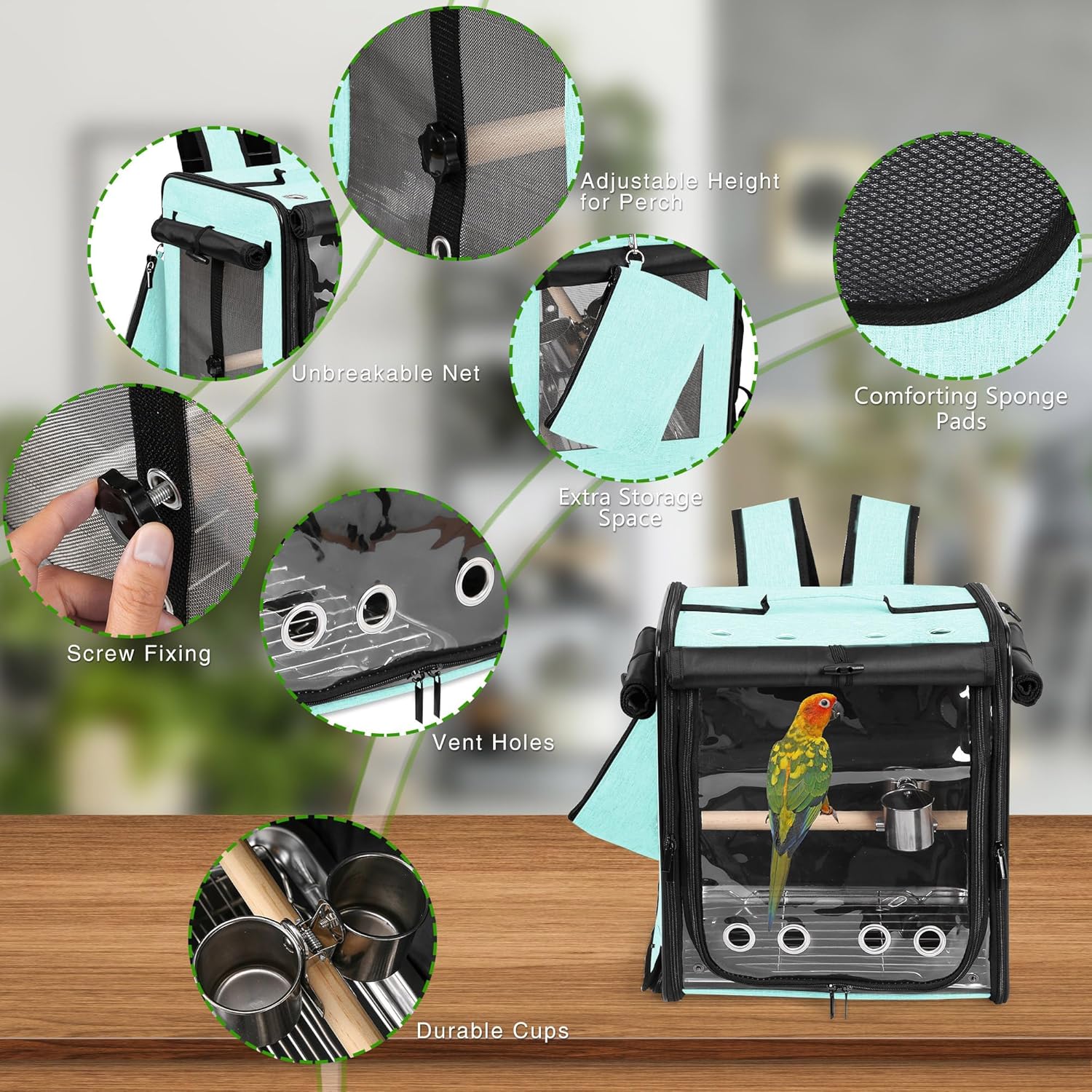 - 【ADDITIONAL OPENING AT THE BOTTOM FOR EASY CLEANING】We have designed a new opening and zipper at the bottom of the bird carrier backpack. Convenient for you to clean the tray at any time. This way, even for long-distance travel, you can clean the tray and keep it clean at any time without dismantling the perch or taking out the birds.