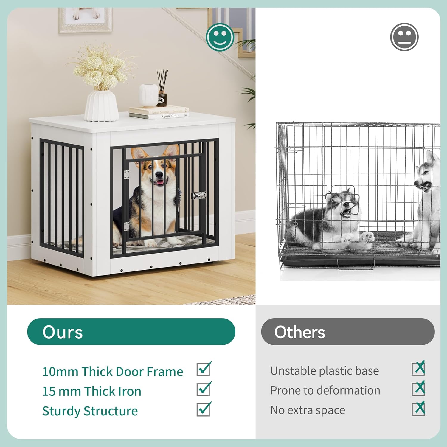 - 2-in-1 Design: The large dog kennel serves as a functional side table that also doubles as a cozy resting space for your pet and stylish furniture piece; Its innovative design saves space and adds a unique element to your home decor, blending utility and style