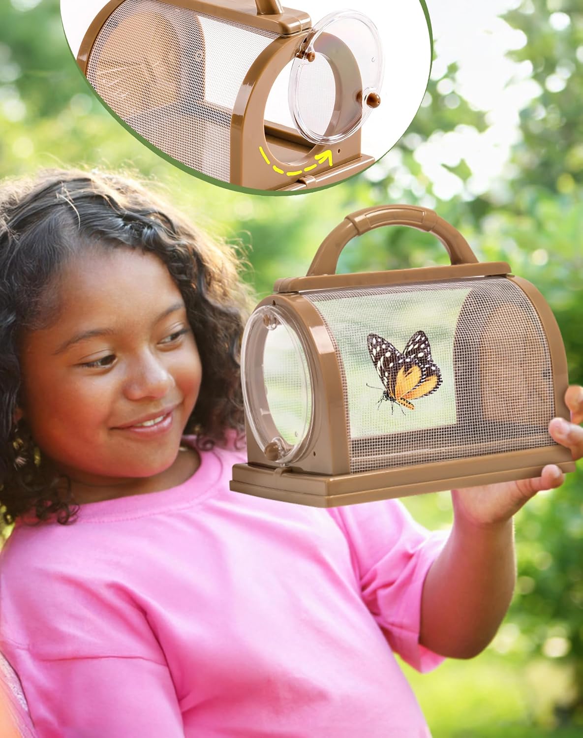 - 【All-in-One Adventure Kit】 This comprehensive set includes a magnifying glass for compass watch*1, kid binoculars*1, bug container*1, guide card set*1, cage*1 , telescopic net*1, clamp*1, tweezer*1, magnifying glass*1 and portable bag*1. It has everything kids need to dive into exciting outdoor adventures.