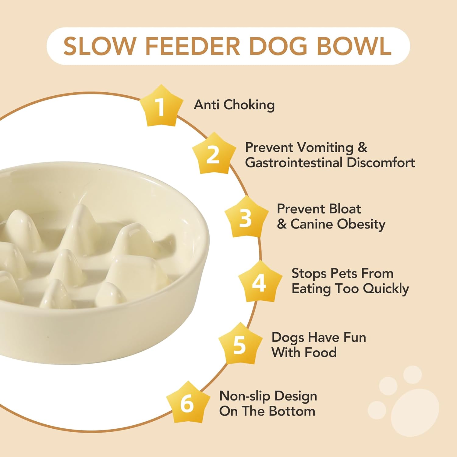 - Pet Friendly: You will receive a 7.3'' slow dish & a 6.1'' bowl, which is suitable for your pet's daily feeding and drinking needs. Havniva Slow Feeder dog bowls feature meal-lengthening ridges to help slow down your dog’s eating time. Unique slow feeding design , promotes healthy slow eating, helping prevent obesity, bloat, regurgitation and overeating.