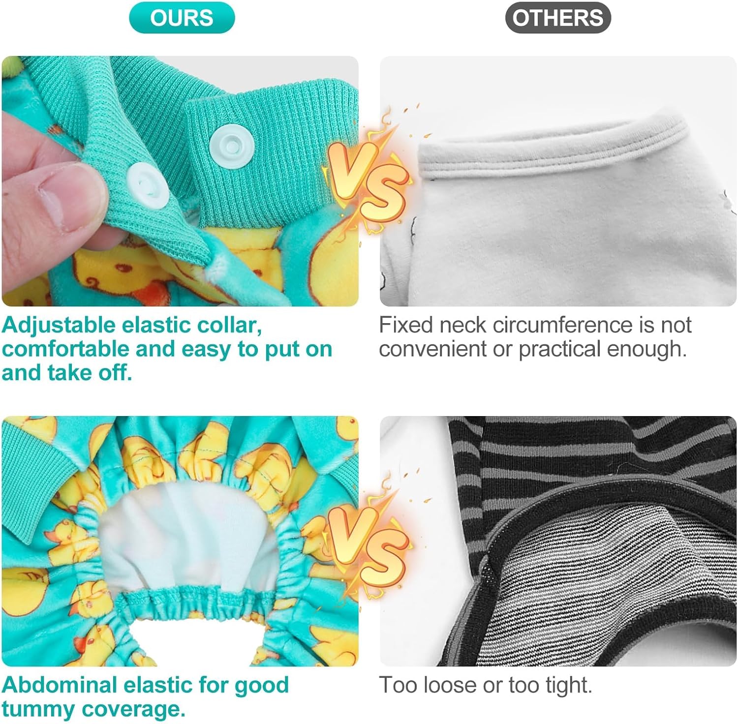 - Belly Wrap Design: The unique belly wrap design of this pet pajama fully covers your pet's belly, providing better protection. The belly is the part of the pet's body most vulnerable to cold, and the belly wrap design provides extra warmth and insulation
