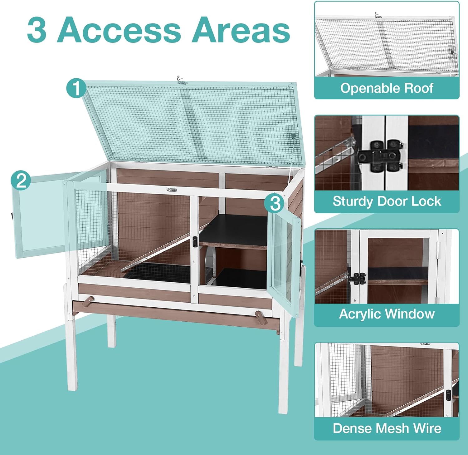 - Spacious & Versatile: Measures 36.6''L x 19.6''W x 36.6''H, providing ample space for 1 rabbit and 1-2 hamsters, guinea pigs, or ferrets