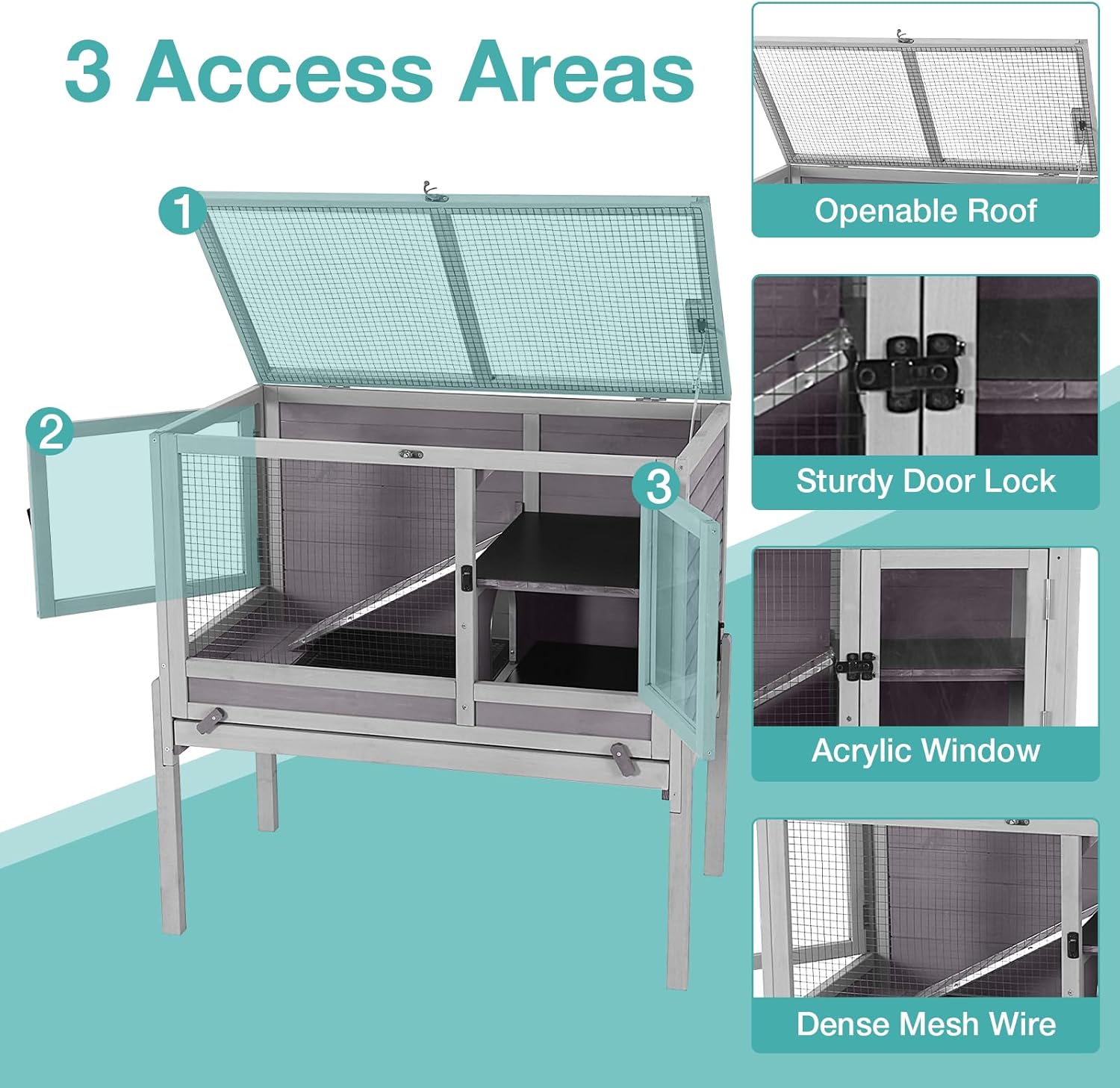 - Spacious & Versatile: Measures 36.6''L x 19.6''W x 36.6''H, providing ample space for 1 rabbit and 1-2 hamsters, guinea pigs, or ferrets