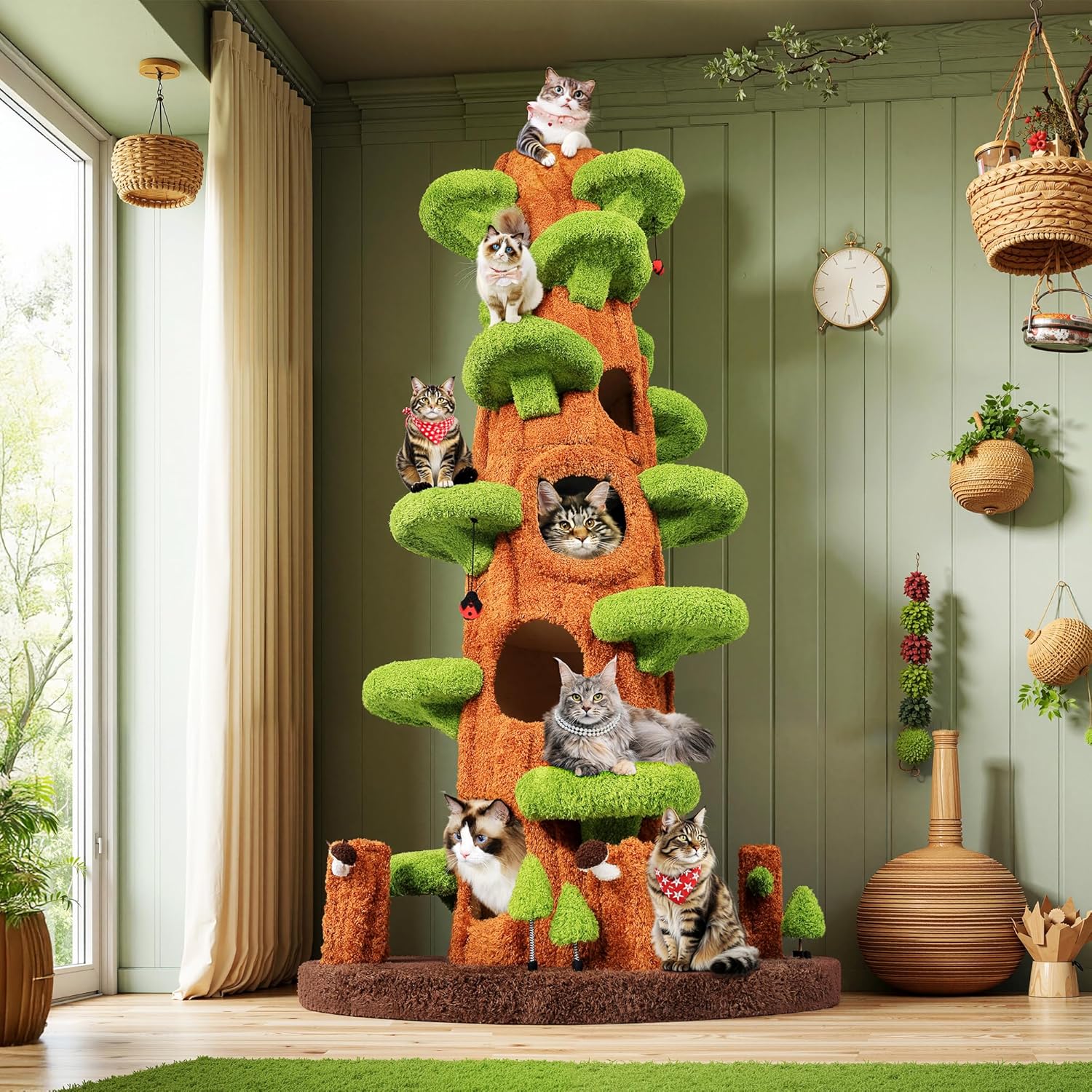 - 【Spacious & Multi-Level Design】This Super Large Cat Tree offers a towering structure with multiple levels, ramps, and platforms, providing your cats with plenty of room to climb, explore, and jump. It's perfect for cats that love to perch up high or venture to new heights in search of adventure.