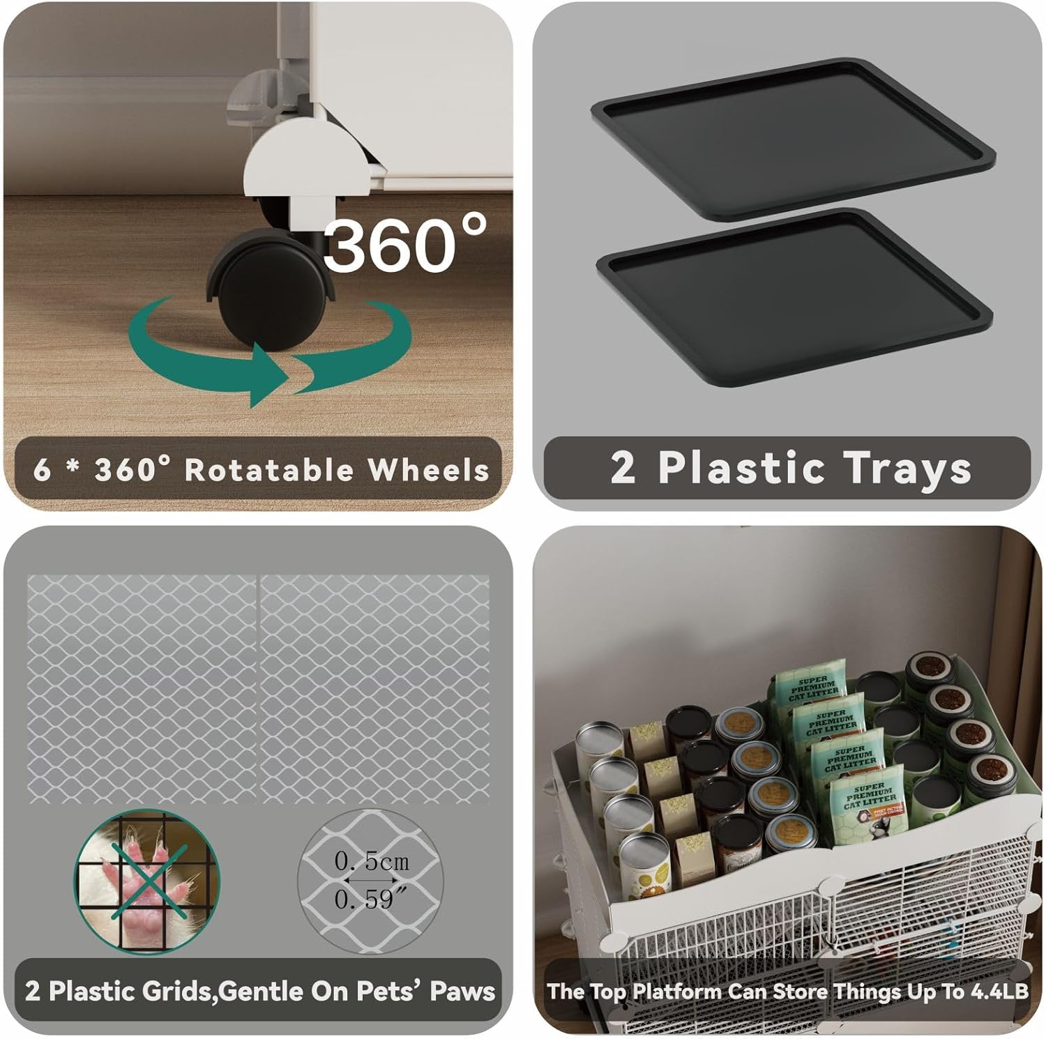 - Easy Cleaning with Pull-out Trays: 2 pull-out trays at the bottom effortlessly collect litter and can be easily removed. The entire cage simply requires a water rinse for quick and convenient cleaning, ensuring a healthy environment for your pets.