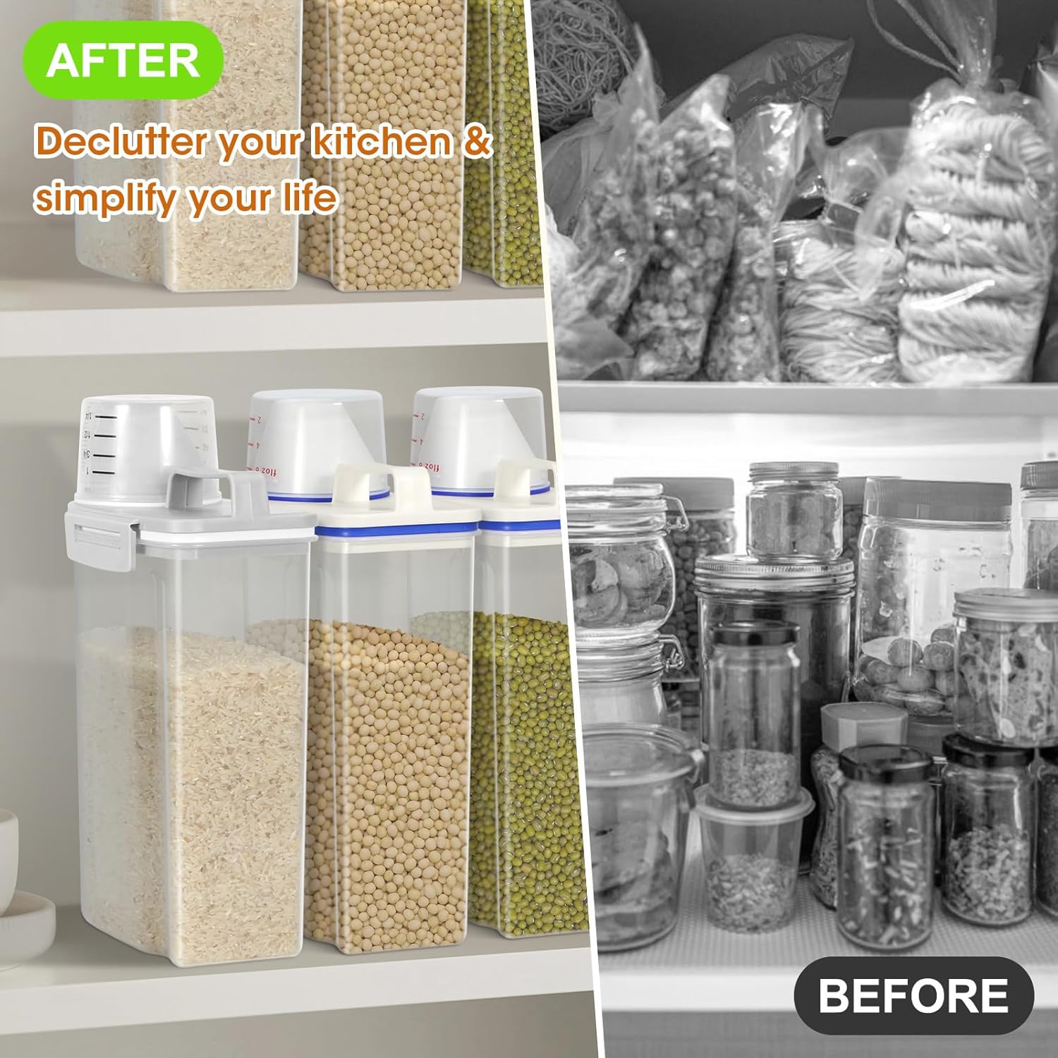- CLEAR VISIBILITY & SPACE SAVING: The rice dispenser are designed with transparent bodies, so you can take a glance for convenient food management. The pantry storage containers with slim size is perfect for pantry organization