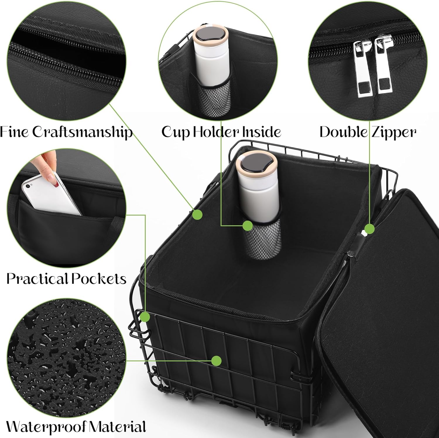 - Upgraded liner bag: the black PU leather liner bag, 15 x 9.4 x 7.8 inches, has a zipper to keep your belongings dry even in harsh weather conditions; external deep pockets offer storage for keys and other small items, while the thickened shockproof foam effectively protects valuable items; the custom cup holder is designed to securely hold your cup during your ride