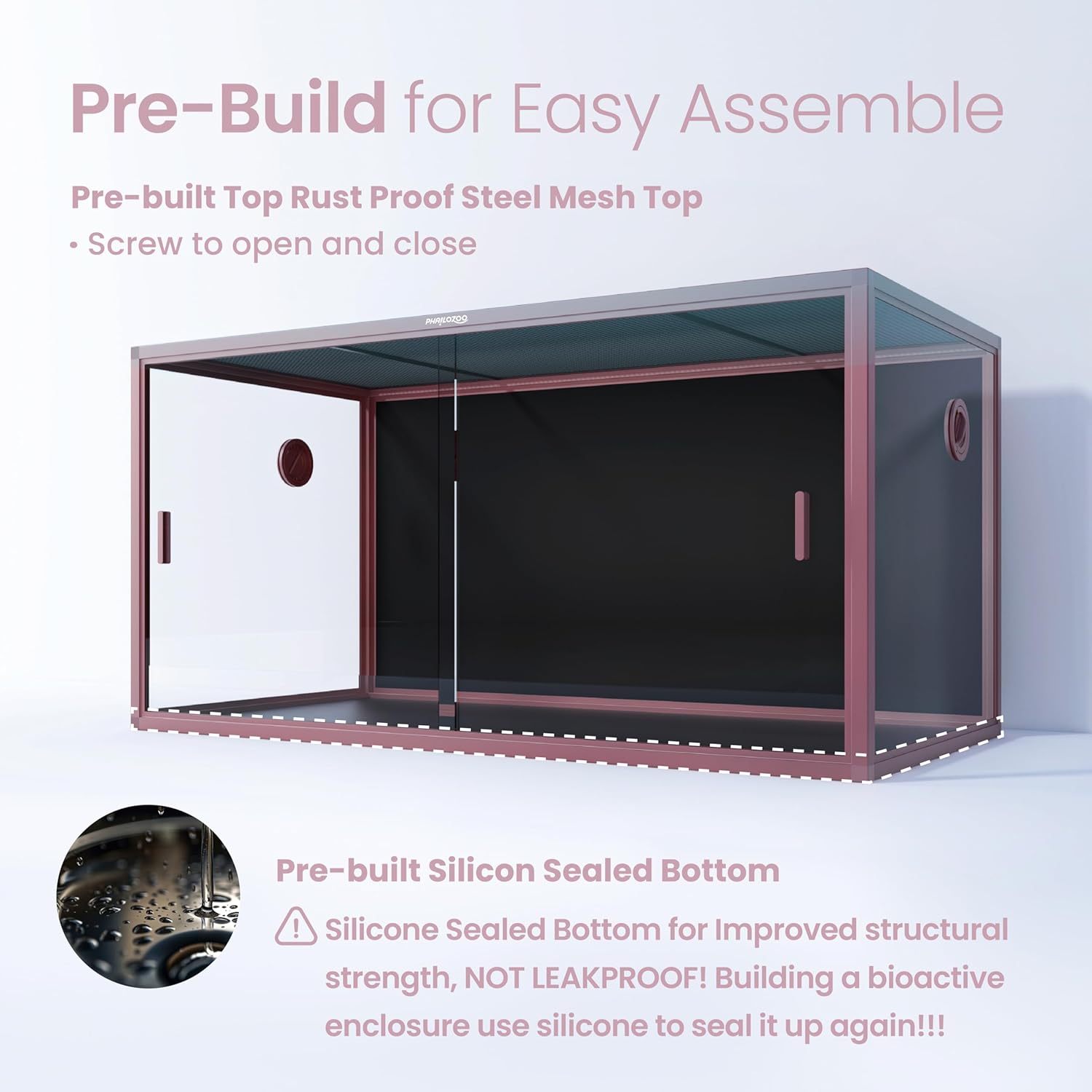 - 【Caution!!!】NOT LEAKPROOF! Silicone-sealed bottom only for improved structural strength. If you’re building a bioactive enclosure, don’t forget to double-seal with silicone for a secure and reliable seal!