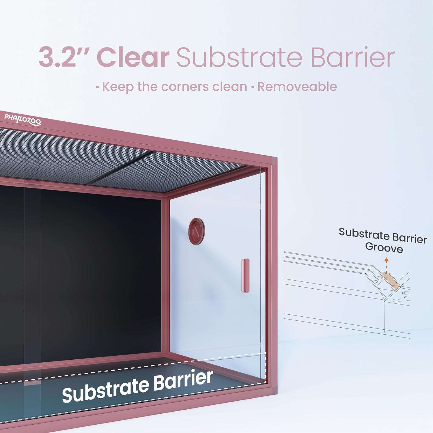 - 【Easy Maintenance】Front opening reptile terrarium with door handles included for easy cleaning & feeding. No more suction cup problems or unsightly fingerprints all over. The substrate barrier keeps the substrate in place. Our tempered glass doors are durable enough to withstand scratching.