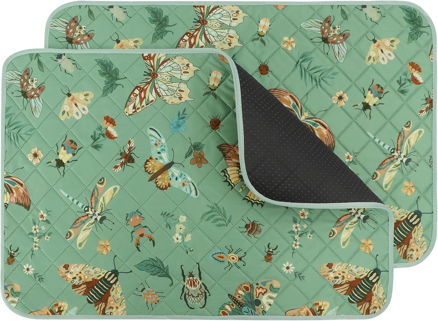 IEUUMLER Washable Pee Pads for Dogs, 2 Pack Insect Pattern Reusable Waterproof Puppy Potty Pads, Non-Slip Absorbent Pet Training Pads for Playpen Crate Bed EU014