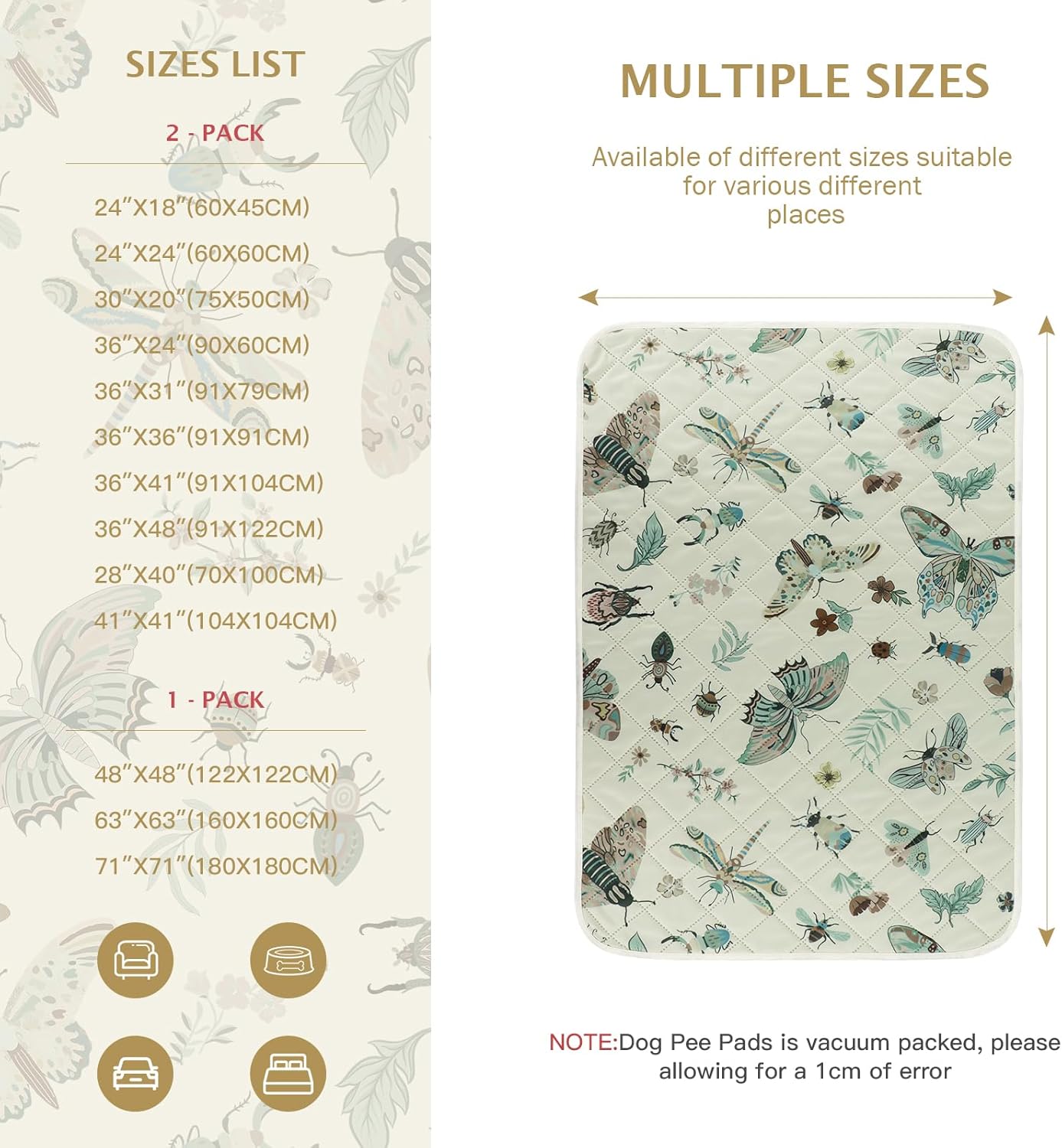 IEUUMLER Washable Pee Pads for Dogs, 1 Pack Insect Pattern Reusable Waterproof Puppy Potty Pads, Non-Slip Absorbent Pet Training Pads for Playpen Crate Bed EU014