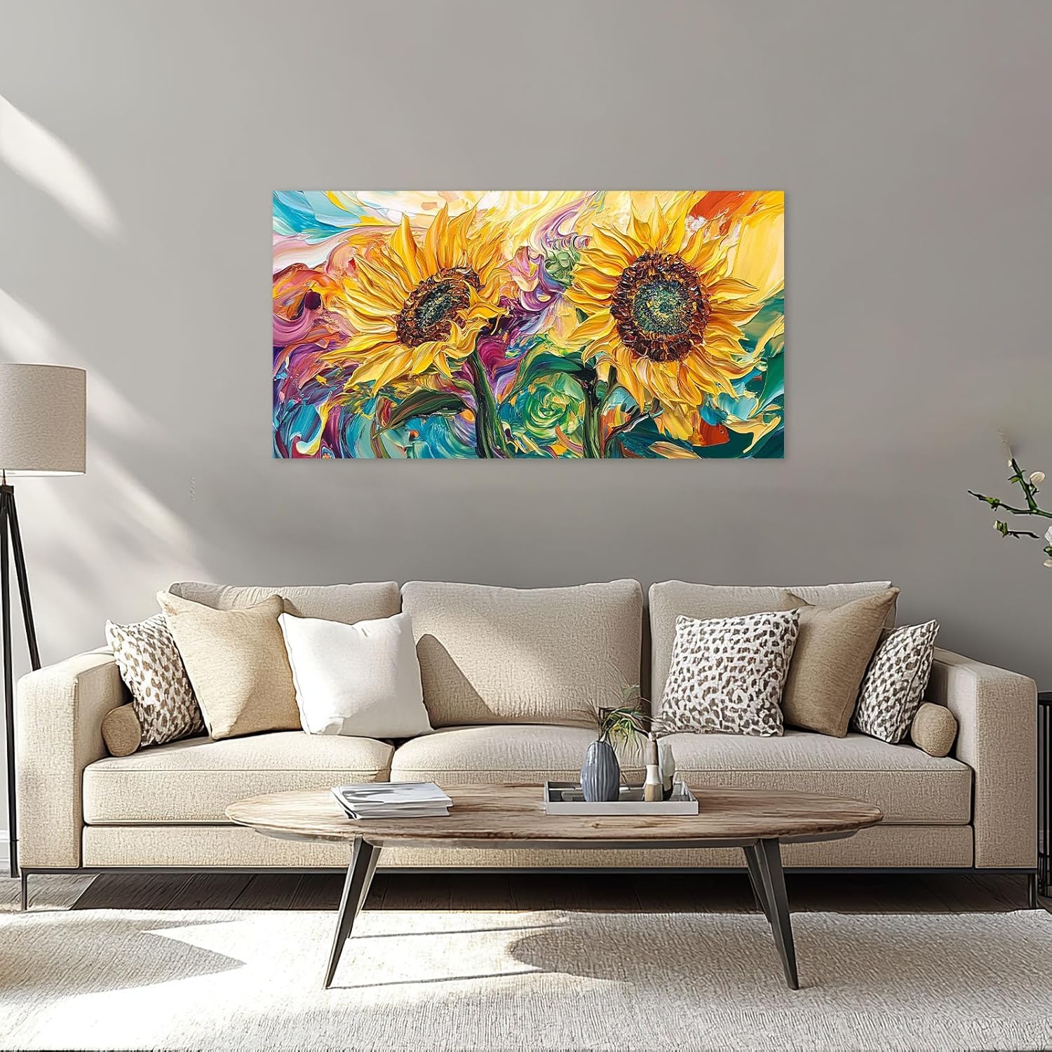 Large Sunflower Wall Art Canvas Living Room Floral Flower Pictures Framed Prints Oversize Wall Decor Painting for Bedroom Dining Office Home 60"x30"