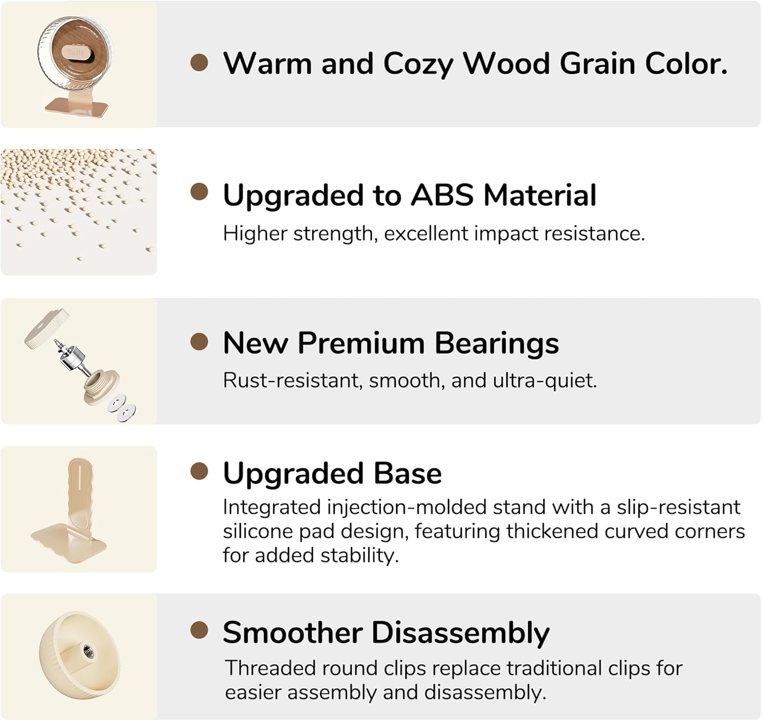 - Independent Wood Grain Background: The exercise wheel comes with an independent wood grain background that adds a warm and natural feel to your pet's environment, enhancing the overall aesthetic and providing a sense of comfort and familiarity for your pet