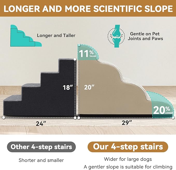 Dog Ramp and Stair for Bed 16" H-20 H,3-Step Cat Stair for Sofa and Chair,4-Step Dog Ramp for High Bed and Window,Durable Nonslip Fabric Cover for Indoor (Beige-20 H, Pet Friendly, 4)