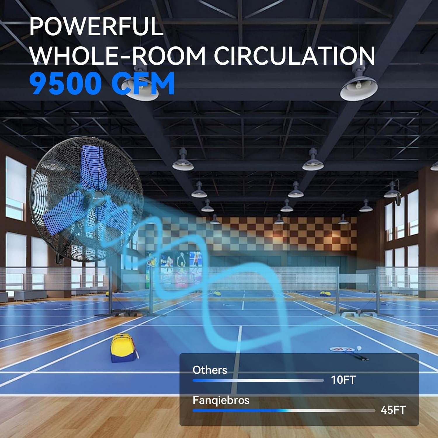 - ššØš°-ššØš¢š¬š ššš¬š¢š š§ - The heavy-duty wall fan operates at a high speed of 9500 CFM with a noise level of only 65dB, which is lower than the industry standard, creating a quieter gathering or working environment