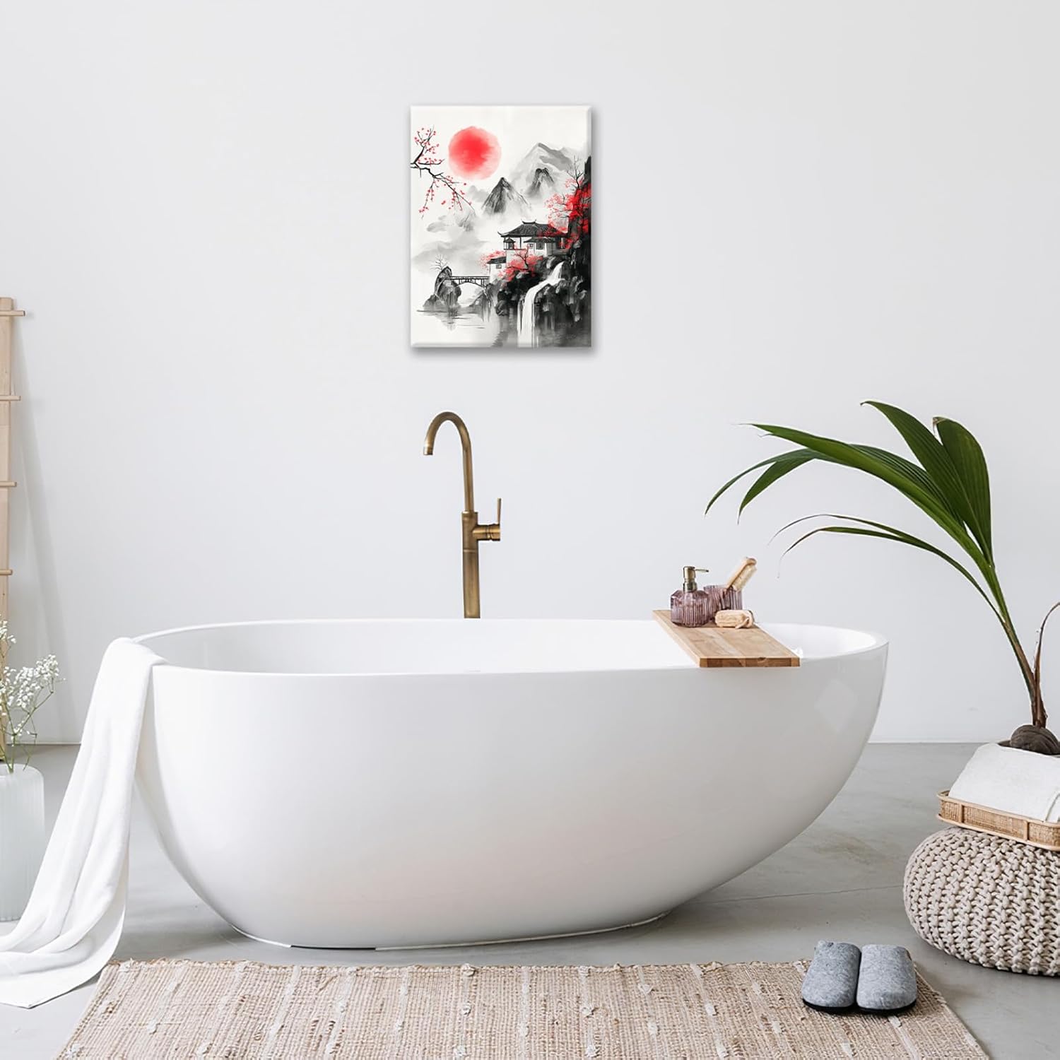 Japanese Wall Art Canvas Asian Nature Wall Decor Prints Framed Painting Mountain Landscape Pictures Gifts Artwork for Bathroom 16"x20"