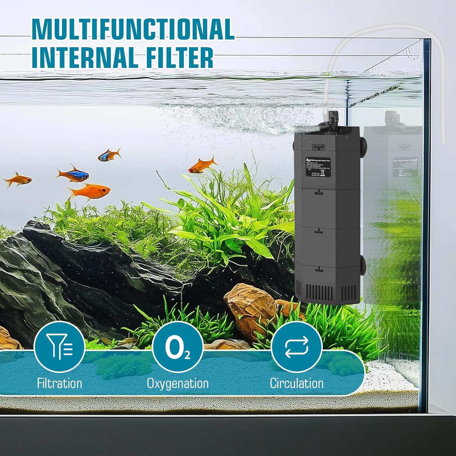 - Powerful Filter with Whisper Operation – Designed with low-noise technology for whisper-quiet performance, this submersible fish tank filter maintains a peaceful environment in bedrooms, offices, or living rooms without disturbing you or your fish.