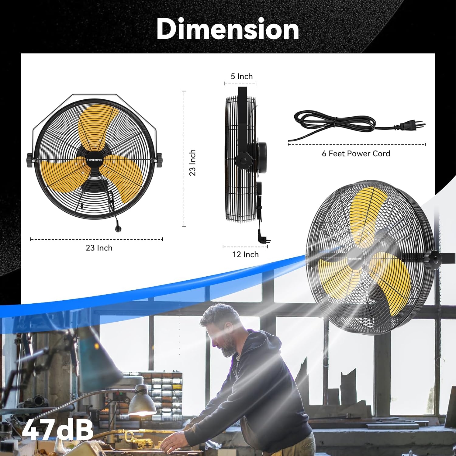 - ššØš°-ššØš¢š¬š ššš¬š¢š š§ - The heavy-duty wall fan operates at a high speed of 4580 CFM with a noise level of only 60dB, which is lower than the industry standard, creating a quieter gathering or working environment