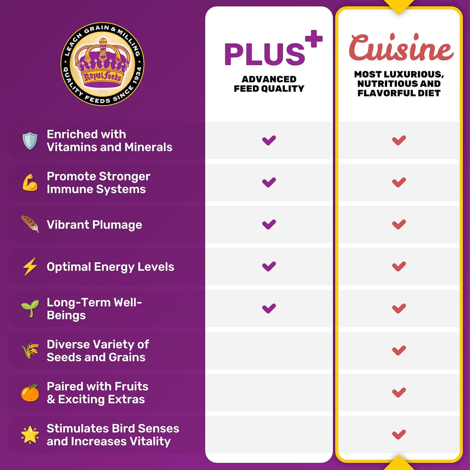 - ππ πππππ πππππ πππππππππ β We prioritize the health of your birds, which is why Finch Cuisine is made with only natural, wholesome ingredients, free from artificial colors, flavors, and preservatives. This means your birds enjoy a pure, top-quality diet, reducing the risk of digestive issues while enhancing feather vibrancy, immune function, and overall well-being.
