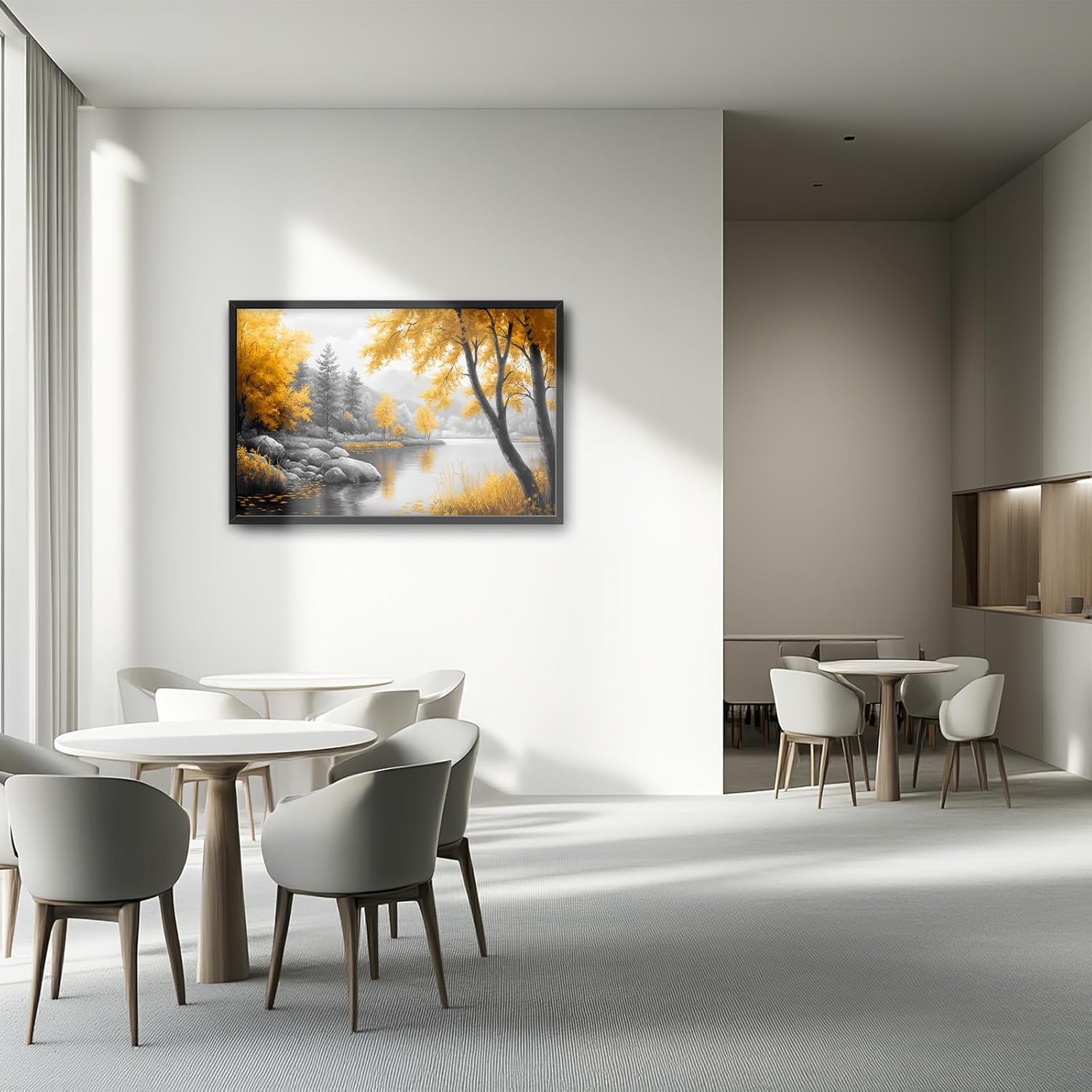 Framed Large Tree Wall Art for Living Room, Oversized Zen Trees Wall Decor, Black and Golden Forest Canvas Pictures Home Decoration for Living Room Bedroom Office 36"x24"