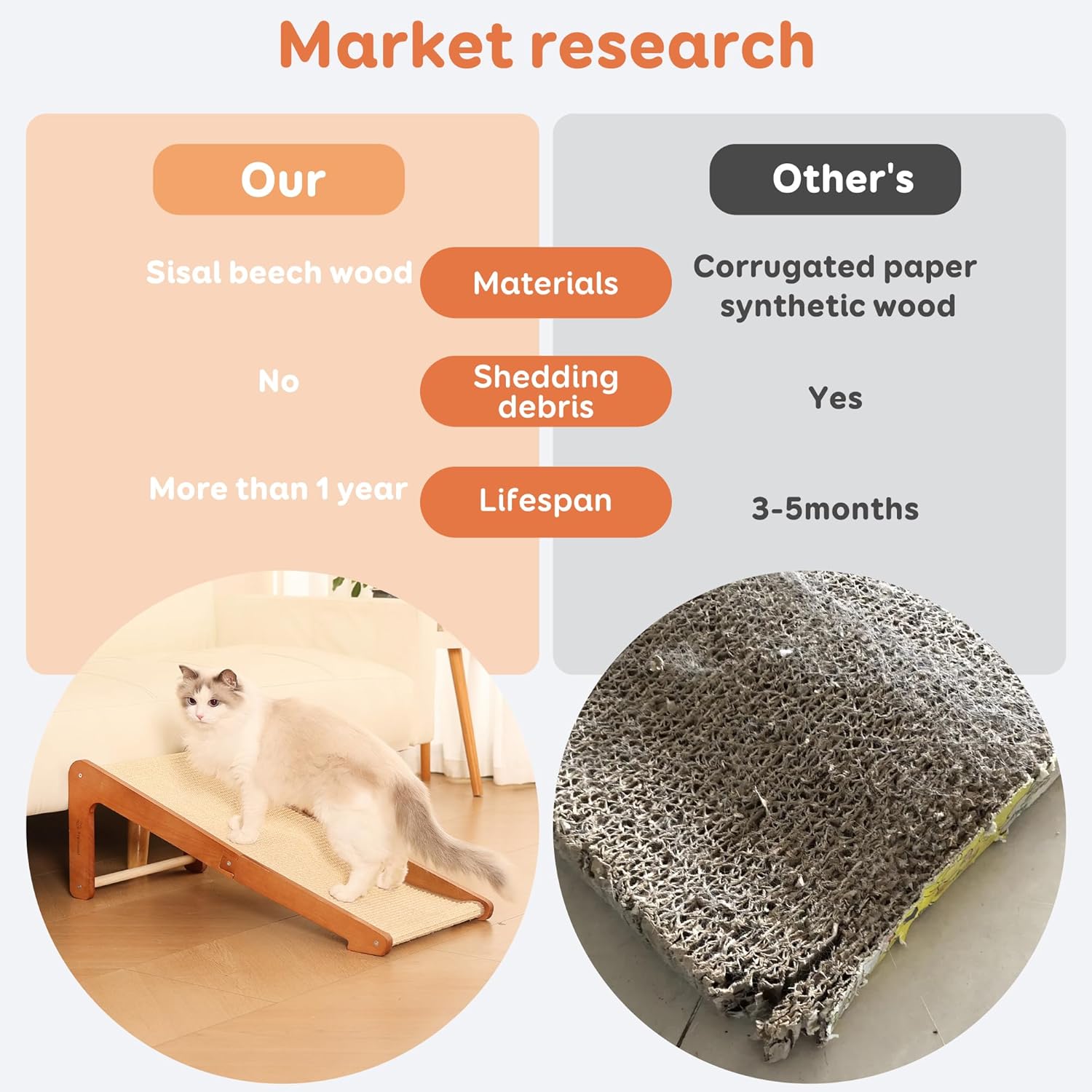 - 【Strong and durable】High-Quality beechwood base made from sturdy and durable beechwood, the L-shaped design ensures stability and prevents tipping, providing a safe scratching experience for your cat.