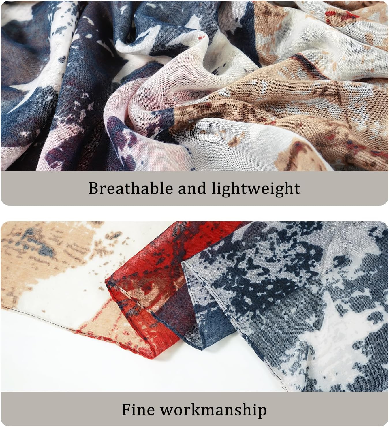 - Multipurpose:The Patriotic Scarf for women can mix and match for any type of Coat,Jacket,Blouse,Sweater,Shirt and Dress. Long scarf can be hijab, knotted ,twisted,wrapped or doubled around neck, shoulders and head