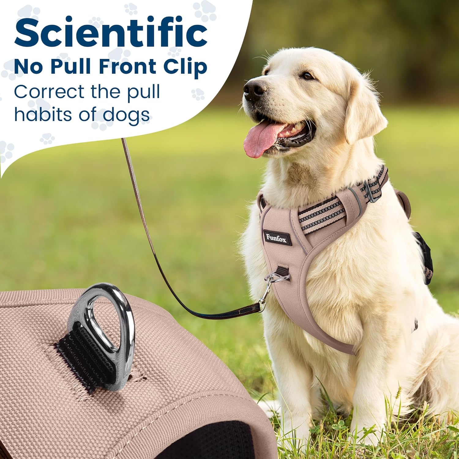 Funfox Dog Harness No Pull, Adjustable Pet Vest Harness, Super Soft Material with Vertical Handle Easy Control, Reflective Night Walking, 2 Leash Clips for Large Dogs, Brown, L