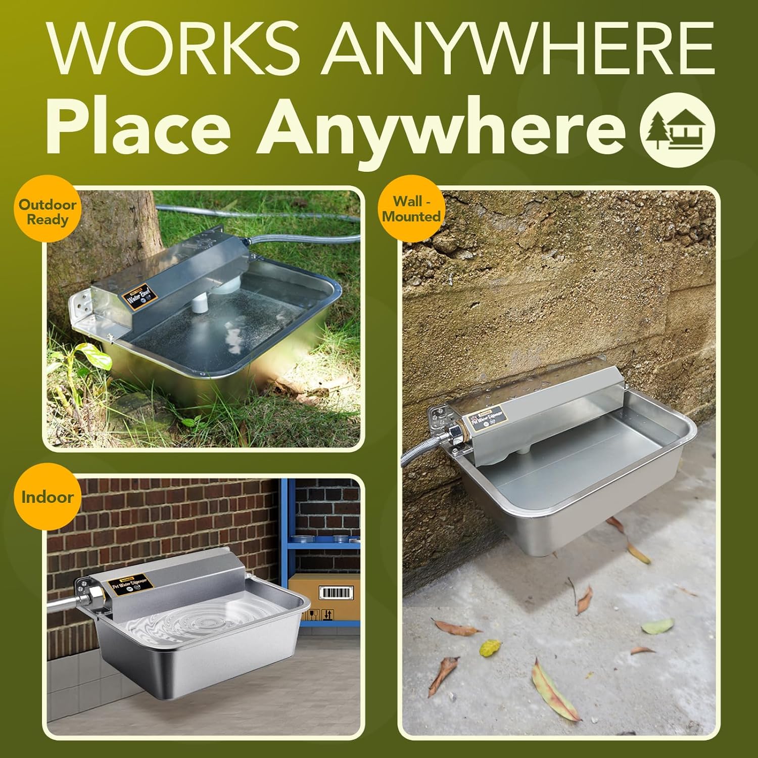 - Versatile Use: This stainless steel animal water bowl provides a steady water supply for dogs, stray cats, rabbits, poultry, livestock, and small animals. It’s ideal for use in farms, gardens, dog parks, and more