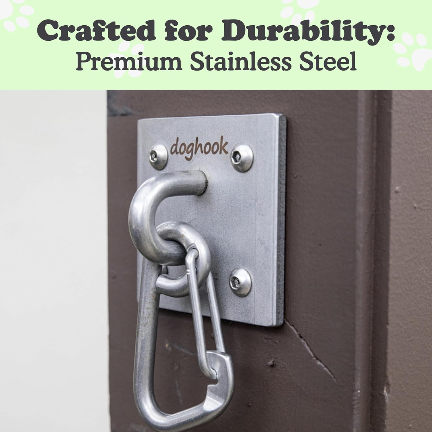- Ultimate Safety and Security: Our dog lead hook for walls is engineered with premium stainless steel, Made in the USA and tested to hold up to 1,200 lbs. This sturdy dog hook guarantees your dog's or multiple dogs safety.