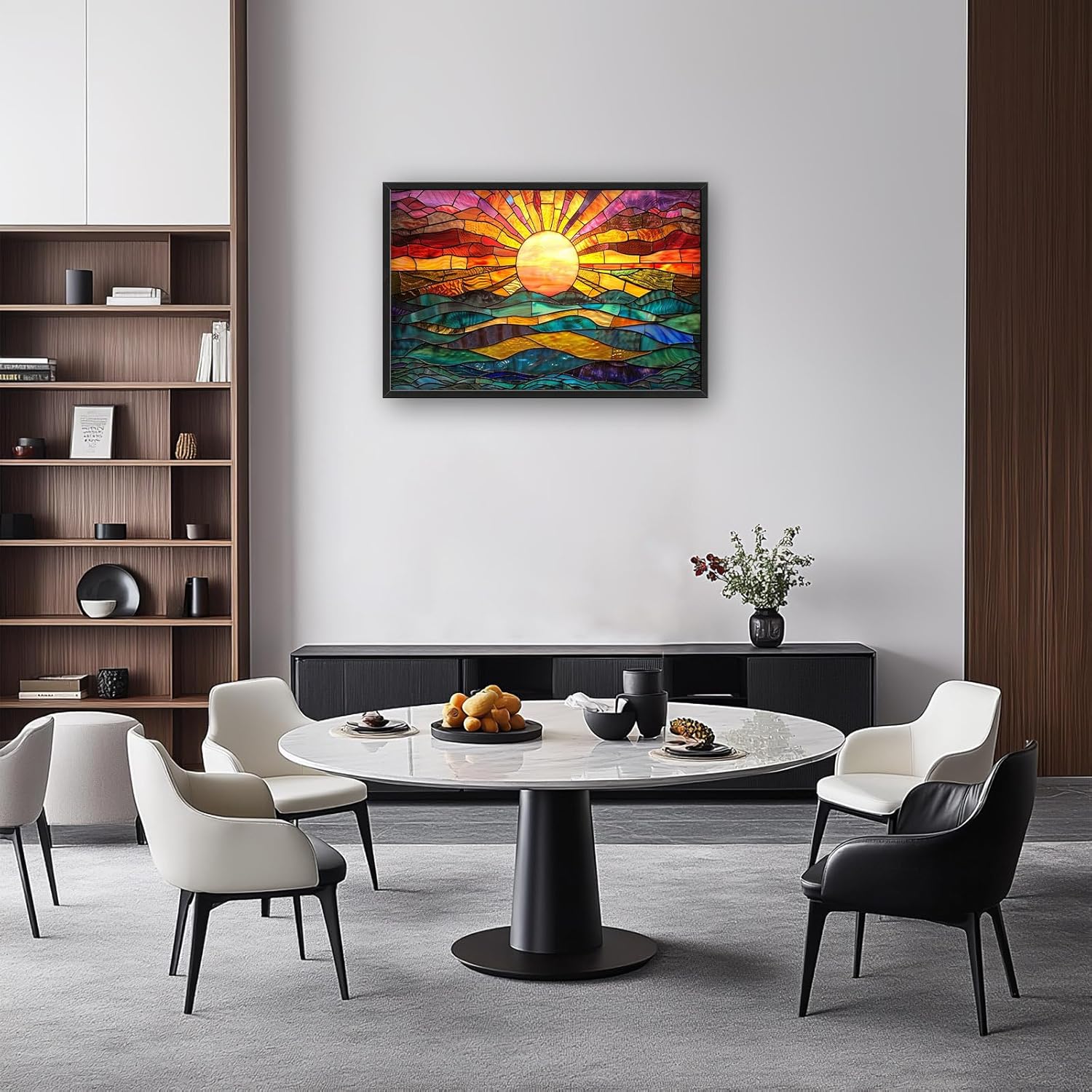 - 【Unique Design】This framed painting depicts the sun rising over the ocean in bright colors and intricate patterns. The water is calm as it reflects all these hues, creating an amazing visual effect. In the center of the picture, the golden sun casts a warm light across the entire picture. The artwork captures the beauty of dawn, symbolizing new beginnings and hope.