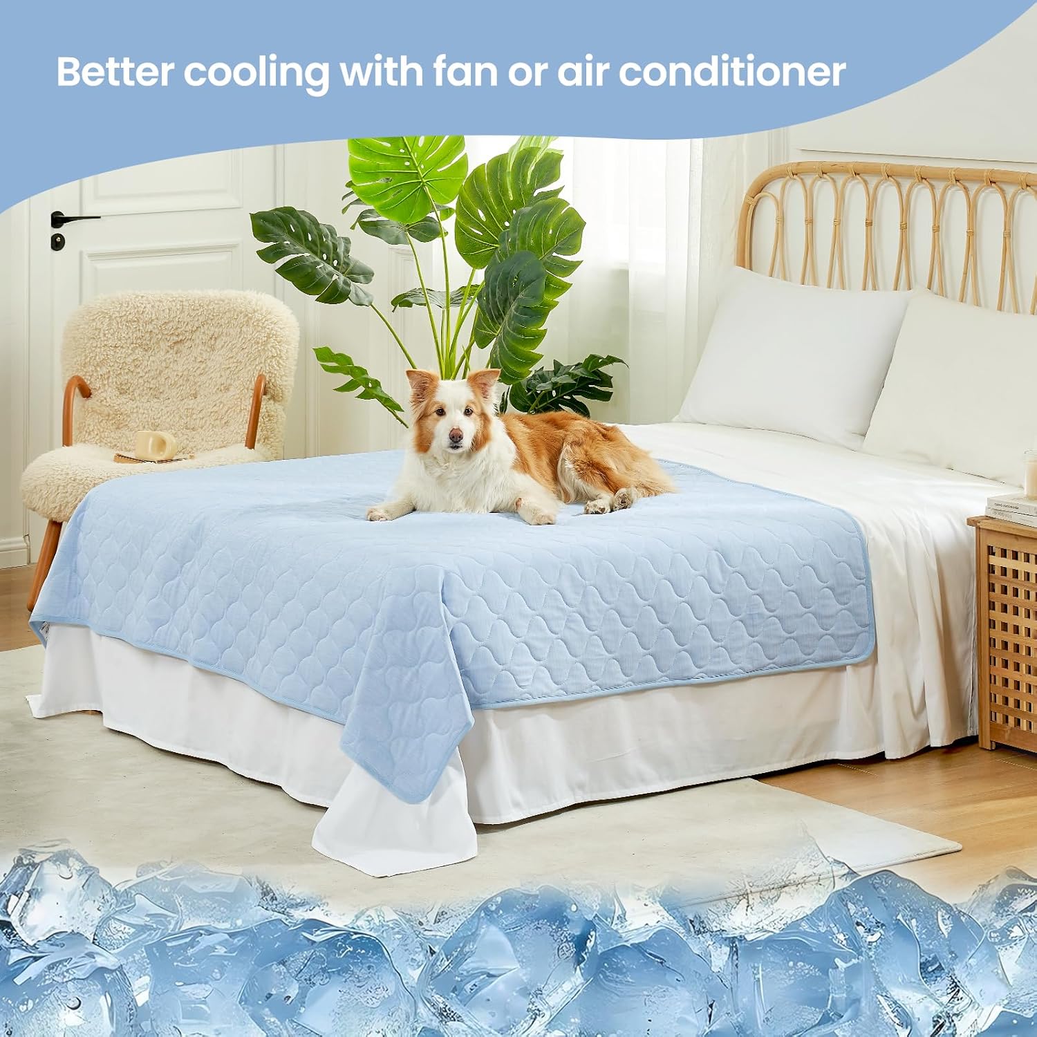 Cozy Bliss Leakproof Cooling Blanket for Large Dogs – Q-Max>0.4, Durable & Washable Dog Cooling Mat for Hot Weather, Soft Pet Throw & Couch Protector for Multiple Pets 60x80 Inch, Heather Cool Blue